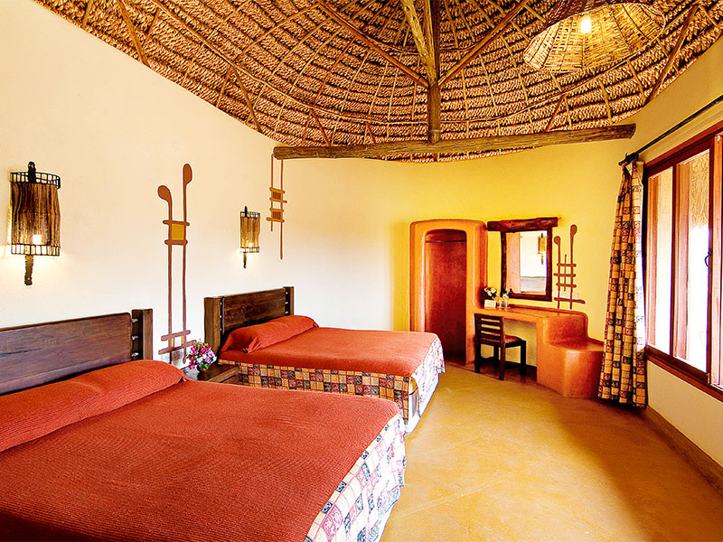 De lodge bestaat uit 30 cottages, elk met 2 smaakvol ingerichte kamers. Iedere kamer is voor zien van 2 queen-size bedden, douche en prive veranda met uitzicht op de heuvels, vlakten en de rivier.