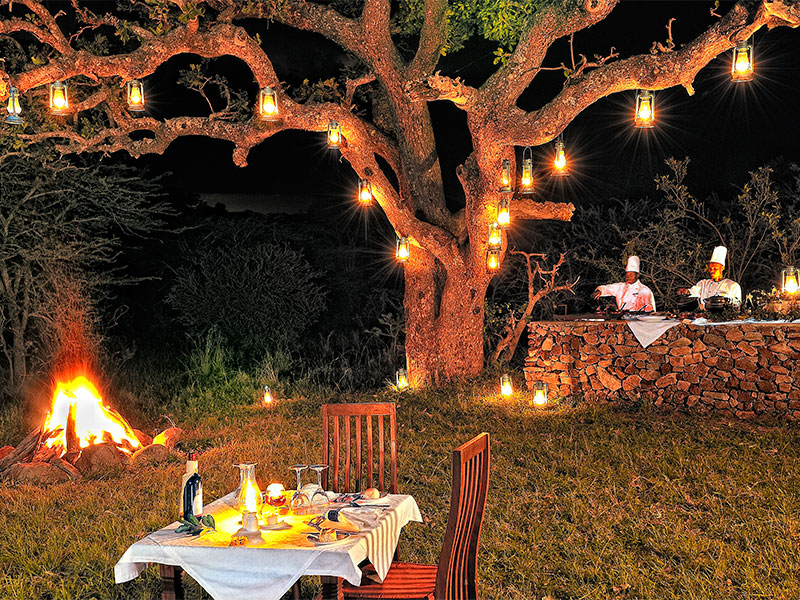 De zonsondergang is hier een unieke belevenis. Een andere bijzondere ervaring is de ‘Bush walk’ onder leiding van een game ranger.