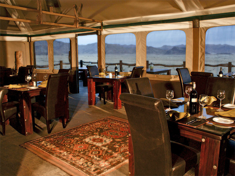 Verder beschikt de lodge over een restaurant met een traditionele Namibische keuken, een sfeervolle bar en een veranda met een bijzonder uitzicht.