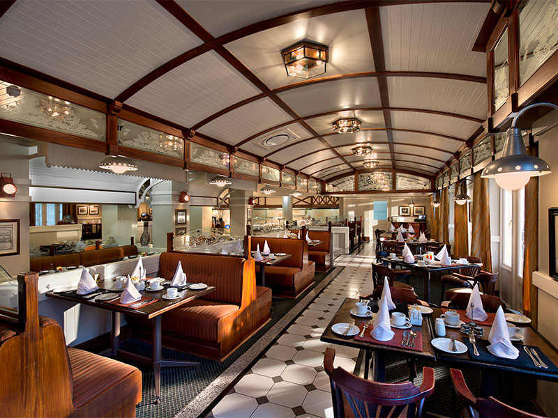 Er is een keuze uit verschillende restaurants in het hotel. Het "Platform One Restaurant" is geheel in de stijl van een oude treincoupé ingericht en de "Captains Taverne", een visrestaurant. Verder heeft het hotel een schitterende tuin met een groot zwembad met fonteinen.