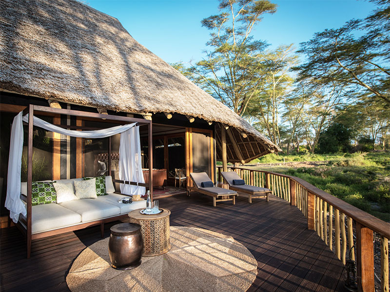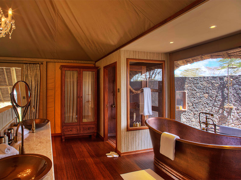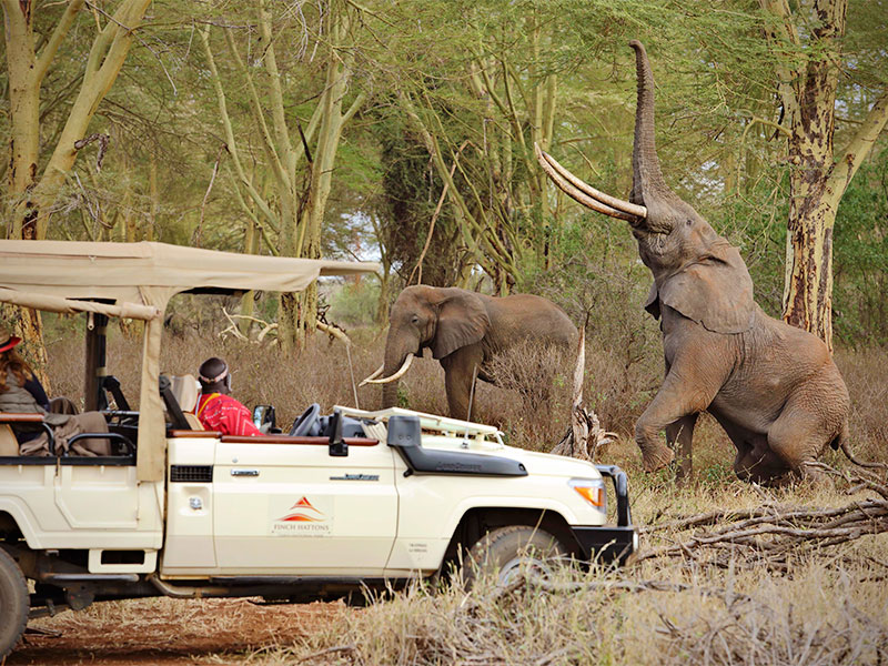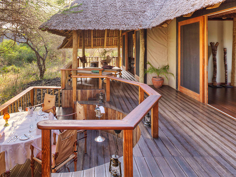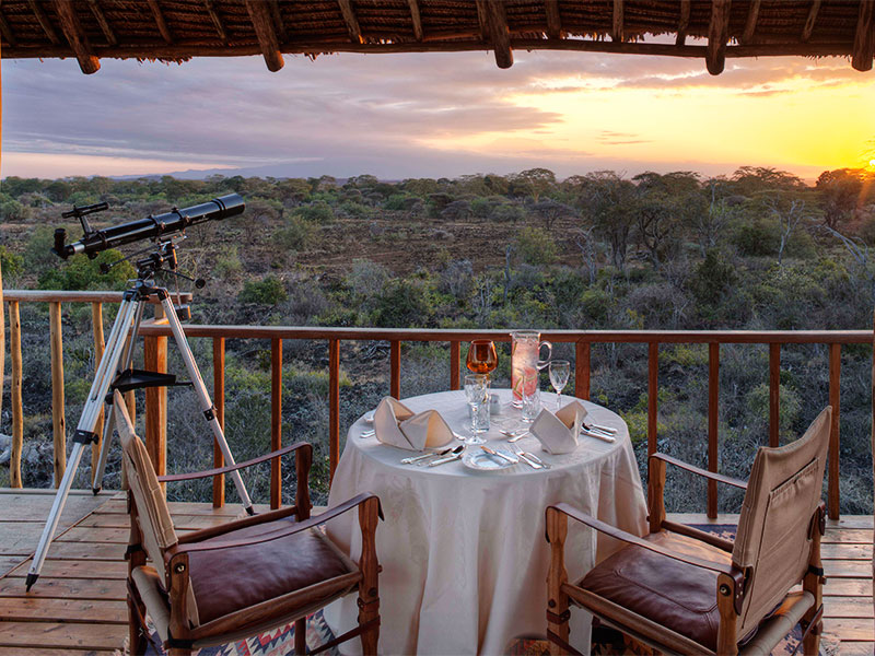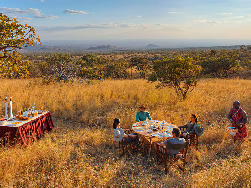 Safari’s worden in open voertuigen of te voet gemaakt. Sundowner drinks worden geserveerd in de nabij gelegen Chyulu Hills, aan de voet van de Kilimanjaro.