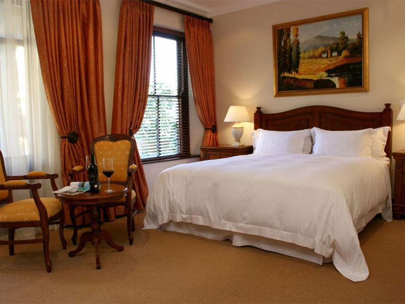 Alle 37 kamers (inclusief enkele suites) zijn van alle gemakken voorzien, zoals verwarming, en-suite badkamer, radio, airco, TV, telefoon, kluisje, en minibar. De meeste kamers hebben uitzicht op de Stellenbosch- en Helderberg Mountains en de omliggende wijngaarden.
