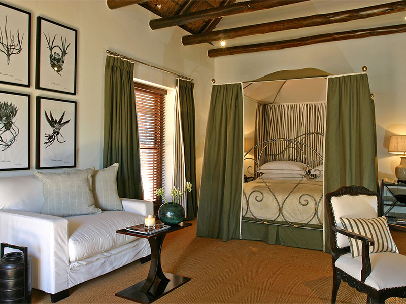 De accommodatie wordt gekenmerkt door karakter, charme, rust en hoffelijkheid. Het Manor House biedt vier luxe suites, een lounge met open haard, satelliet televisie, bar en eetkamer, een veranda met panoramisch uitzicht en een houten terras in de koele schaduw van een oude Ficusboom. De luxe en comfortabele kamers hebben allen een mooie en-suite badkamer en privé-terras met een prachtig uitzicht over de glooiende gazons, de rivier en op de spectaculaire rotsformaties. Alle kamers hebben telefoon, vloerverwarming, plafond ventilator, mini-bar en airco. De Riverside Honeymoon Suite bestaat uit een ruime woonkamer met open haard, een luxe slaapkamer en een badkamer met spa-bad voor twee.