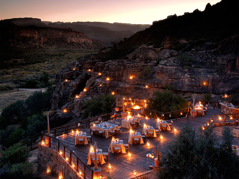 De activiteiten bestaan uit wandelingen, bergbeklimmen, safari's in open voertuigen, kanovaren, bezoek aan de rotstekeningen, mountain biken of excursies naar de Biedouw rivier voor visliefhebbers. U kunt in het reservaat picknicken, zwemmen in de rotspoelen of het zwembad van de lodge. In de lodge kunt u lezen in de bibliotheek, video's kijken, biljarten, cocktails drinken in de boma of gebruik maken van de sauna.