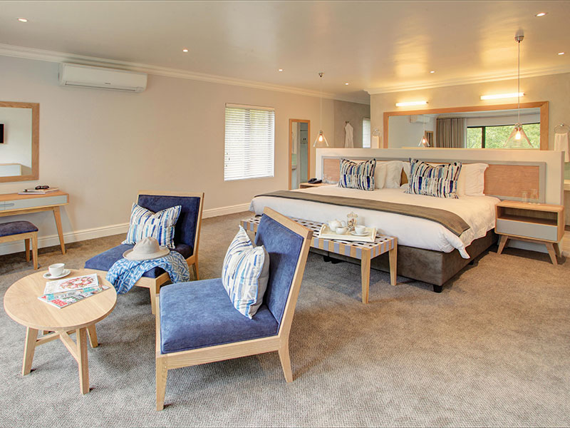 Knysna Hollow Country Estate heeft 64 Garden Suites Superior Eco Estate kamers.In alle suites en kamers is er een badkamer met bad/douche en toilet, TV en mogelijkheden om koffie/thee te zetten. Verder heeft het hotel een restaurant waar u lekker kunt dineren.