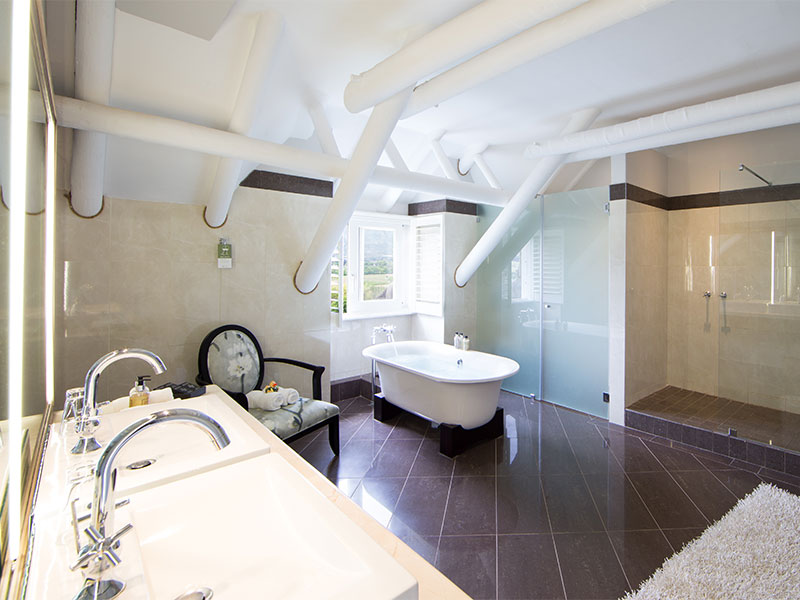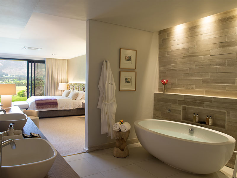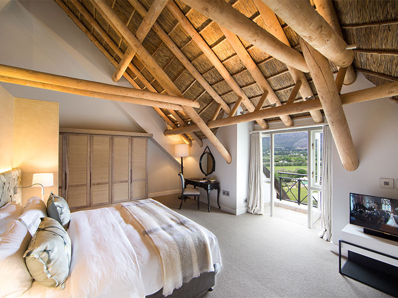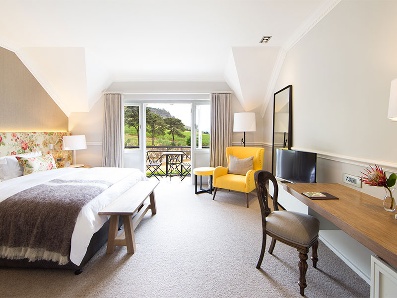 Elk van de 16 kamers en 6 suites in dit hotel zijn individueel en stijlvol ingericht in klassiek Afrikaanse stijl. De meeste kamers hebben een spectaculair uitzicht over de valleien en wijngaarden van Franschhoek. Het geheel is verdeeld in drie vleugels, waardoor u de privacy krijgt die u zou verwachten van een Boutique Hotel. Alle kamers hebben vloerverwarming, telefoon, airco, kluisje, tv, en minibar.