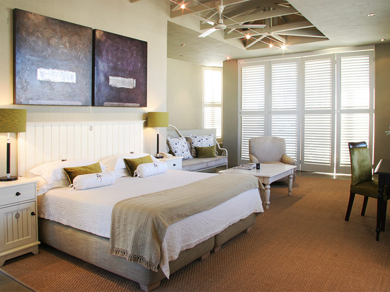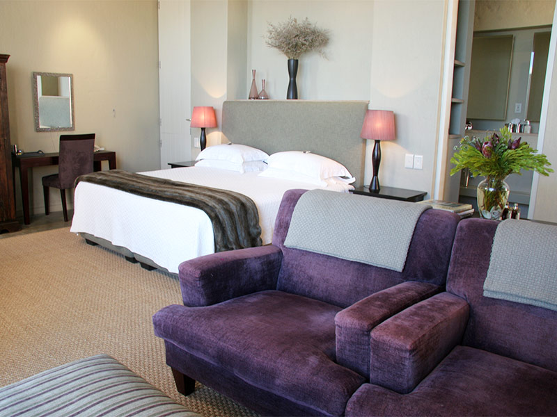 Een luxe guesthouse met spectaculair uitzicht op de Mosselberg mountains en de Blue Flag Grotto Beach in Hermanus.