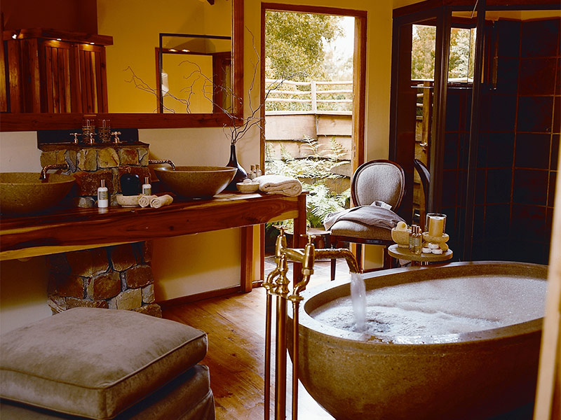 De 10 exclusieve suites en 6 villa's hebben een zitkamer met open haard en een slaapkamer met een panoramavenster. Verder heeft u de beschikking over een minibar, TV, kluisje, ruime badkamer met buitendouche, veranda met ligstoelen en een klein zwembad met een magnifiek uitzicht. De suites zijn onderling verbonden met de centrale receptie door houten wandelpaden.