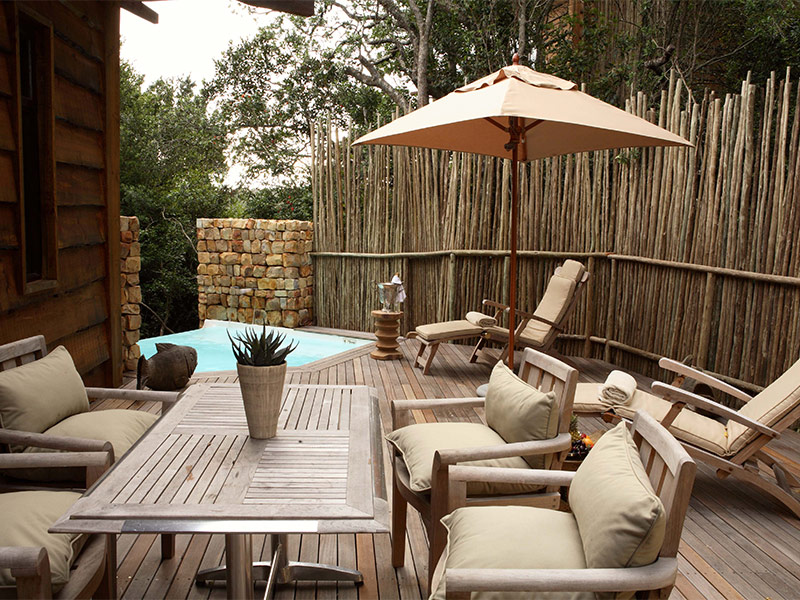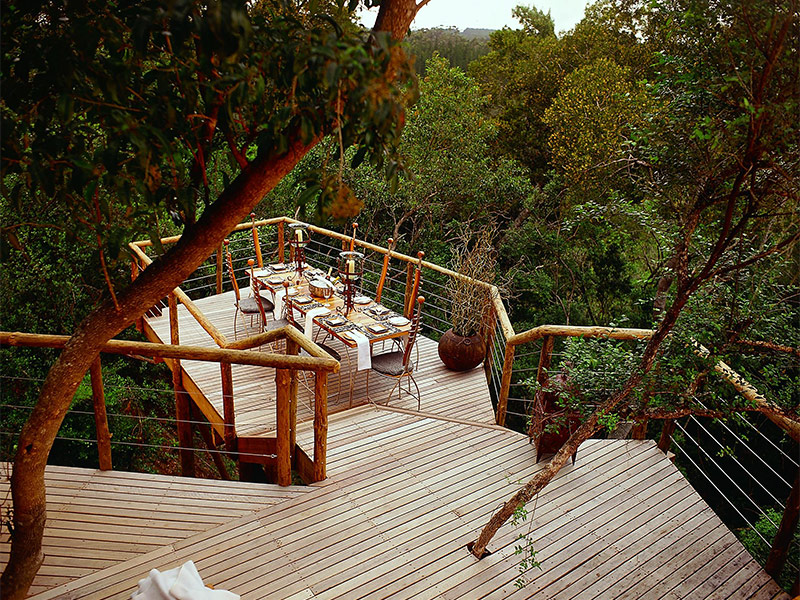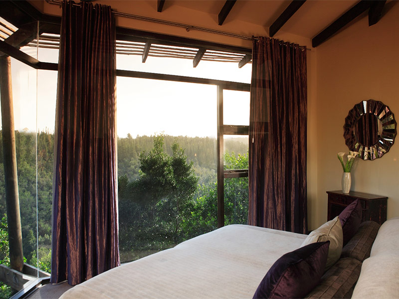 Deze exclusieve lodge is een architectonisch hoogstandje en ligt langs de Tuinroute, hoog in een bos met uitzicht op de Tsitsikamma vallei op ca 10 km van Plettenberg Bay.