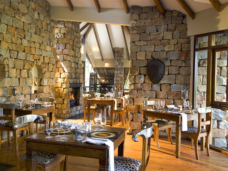 U heeft de beschikking over een lounge met open haard, bar, wijnkelder en een bibliotheek. Het restaurant serveert inheemse en internationale gerechten, vergezeld van bijpassende Zuid-Afrikaanse wijnen.