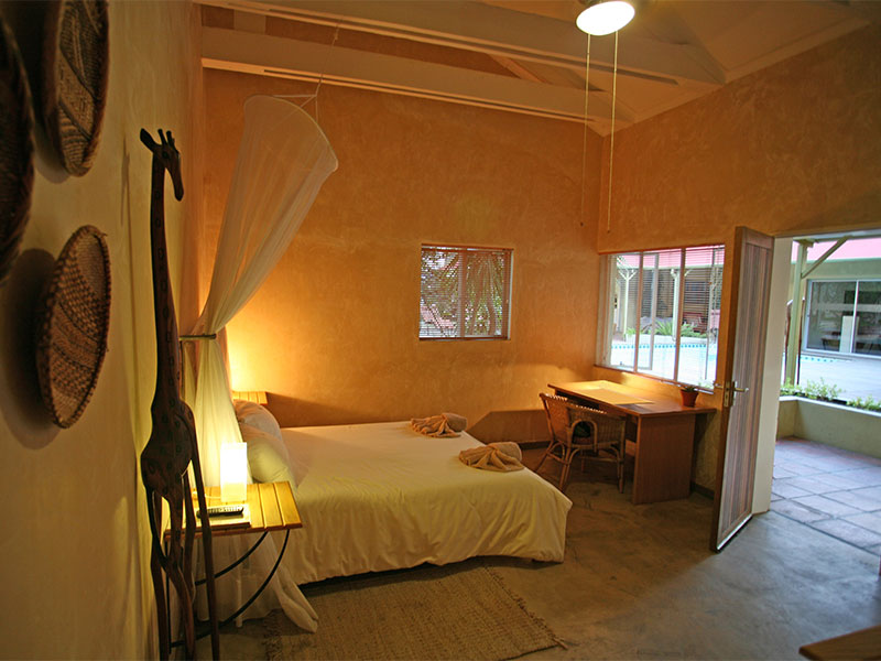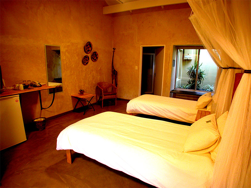 Alle kamers zijn ruim en comfortabel en met een Afrikaans tintje ingericht. Iedere kamer heeft een eigen badkamer, TV, telefoon, minibar, kluisje, ventilator en de gelegenheid om koffie/thee te zetten.
