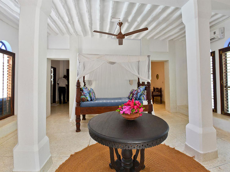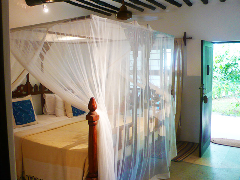 De kamers zijn gebouwd in traditionele Zanzibari stijl met witte kalk gewassen muren, hoge plafonds met houten balken en grote ramen. De villa's en cottages bevatten allemaal prachtige met de hand gesneden Zanzibari bedden met op maat gemaakte muskietennetten. Alle kamers zijn voorzien van airconditioning en hebben ook plafondventilatoren.