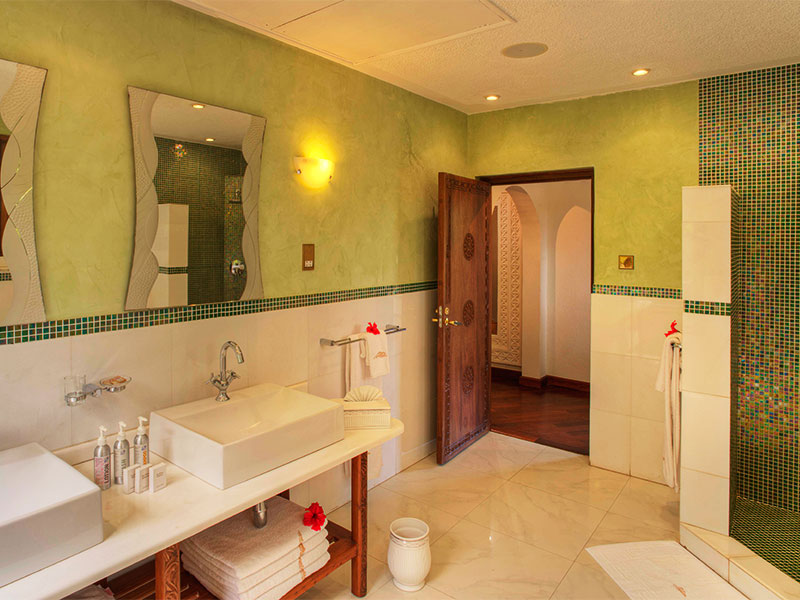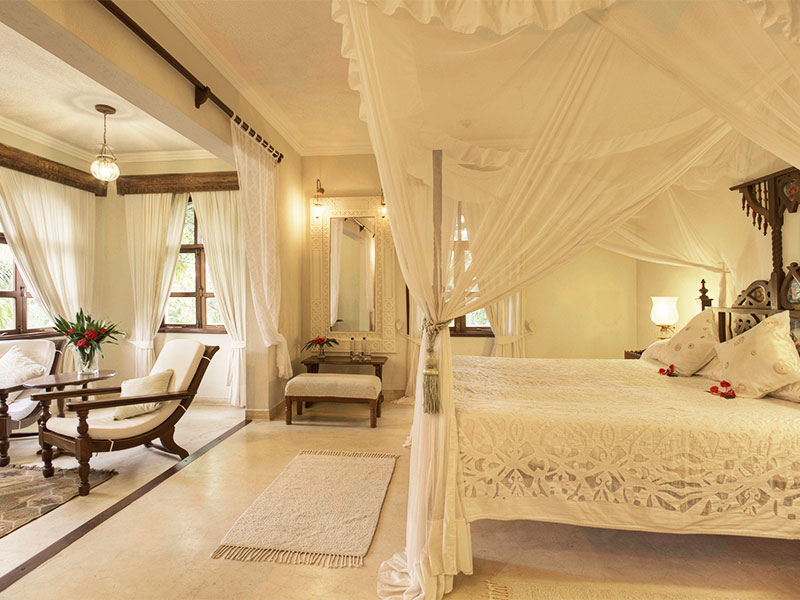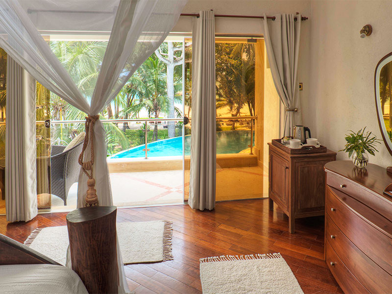 - 3 Deluxe Ocean View Rooms - met een superkingsize bed, ruime inloopkast, en-suite badkamer met douche en dubbele wastafel, schuifdeuren naar een privéveranda met een adembenemend uitzicht op de Indische Oceaan.