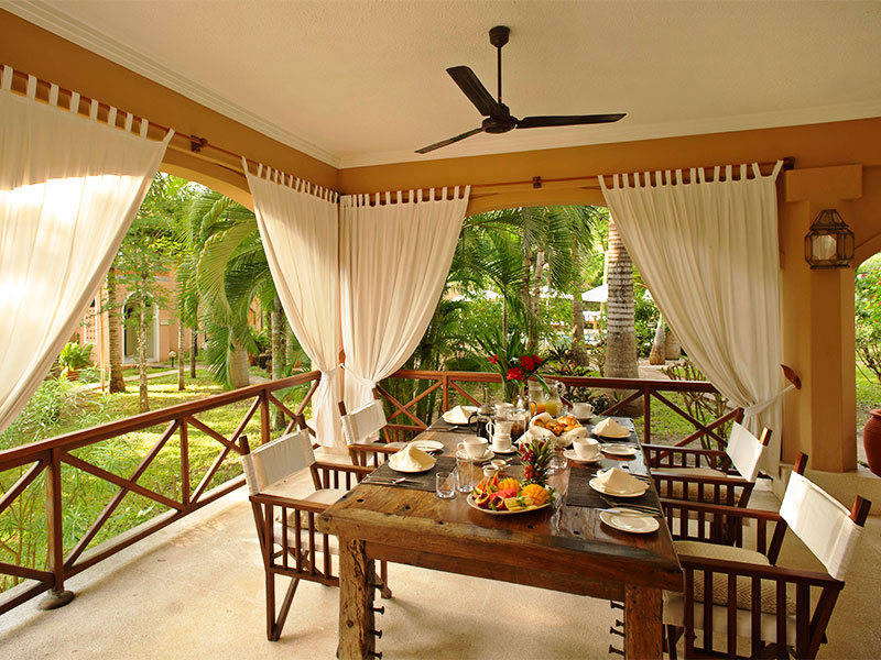 - 6 Executive Villas - De villa's zijn een uniek concept waar u uw eigen toegewijde team heeft dat een all-inclusive service biedt voor maaltijden die in uw villa worden geserveerd. De villa's zijn privé gelegen in weelderige kusttuinen rond een centraal zwembad op slechts enkele meters van de zee. Het privédakterras is ideaal voor romantische diners of sundowners.