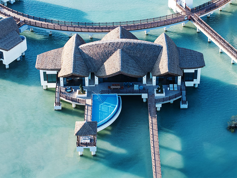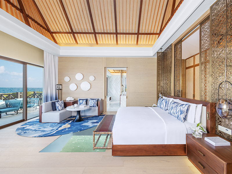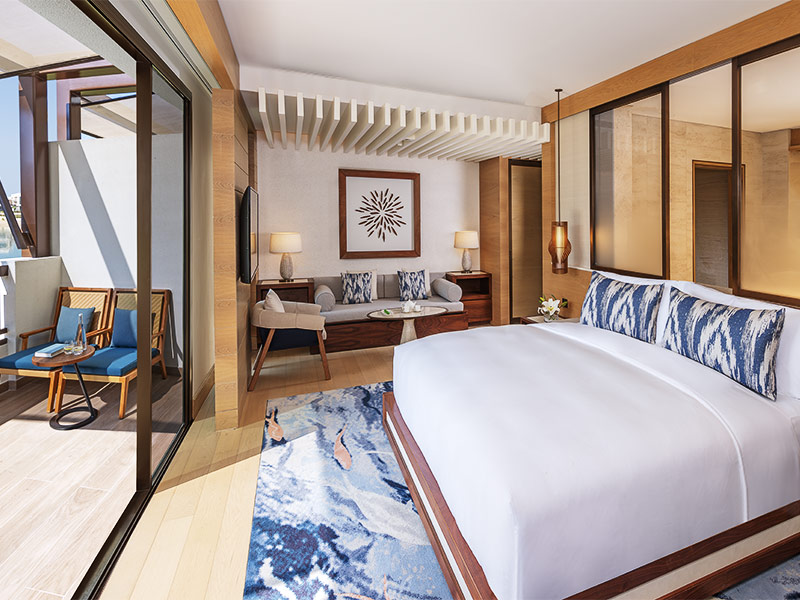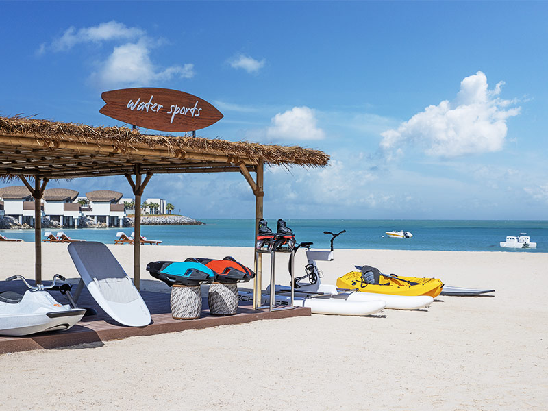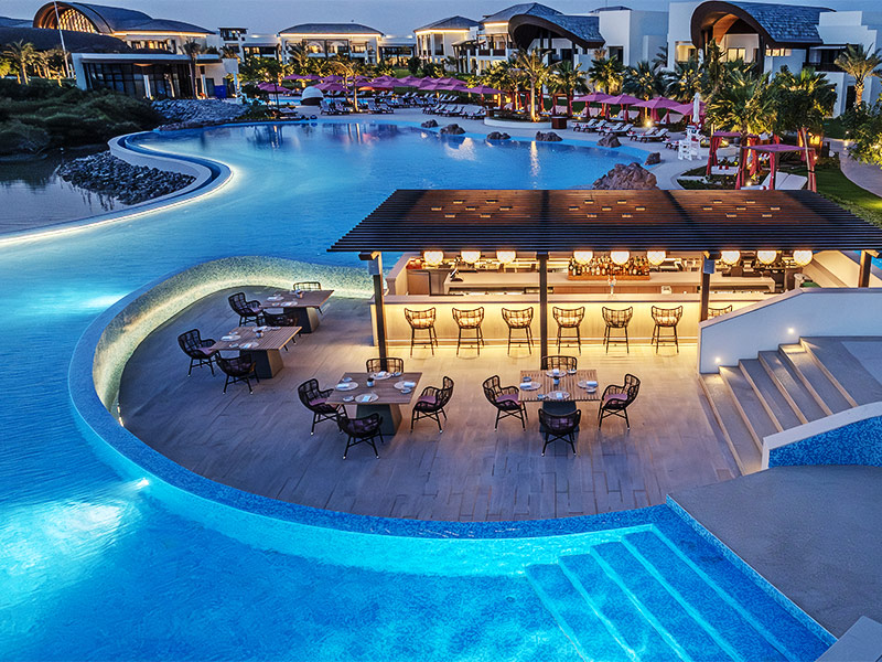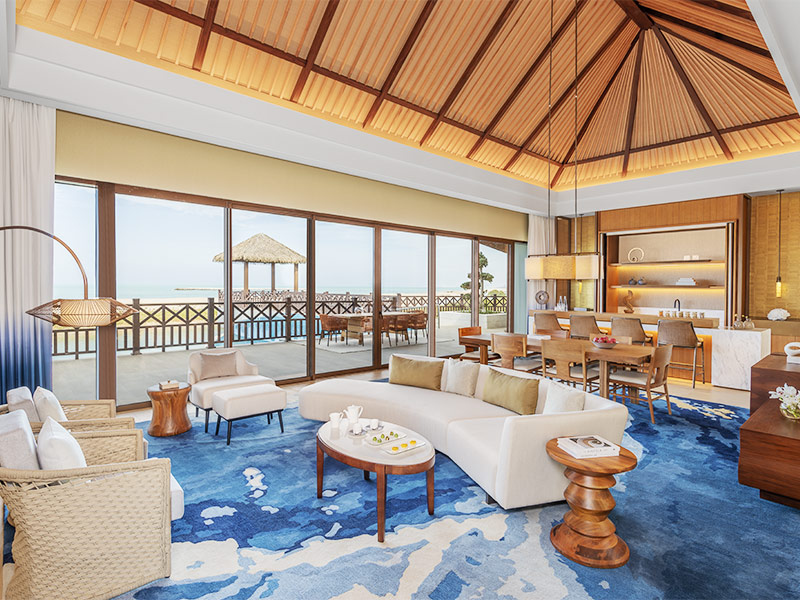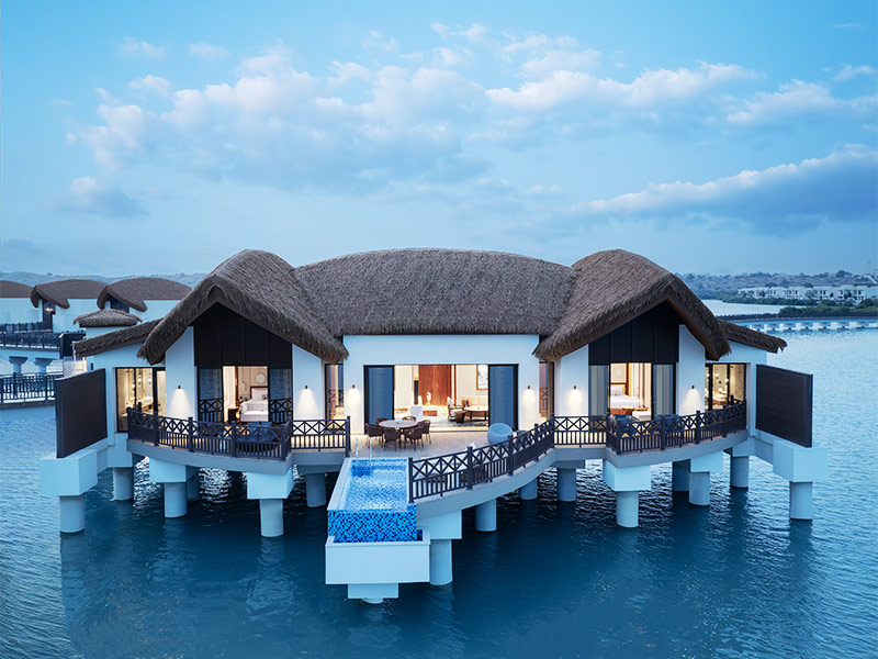 Geniet van een van de 174 kamers, suites en villa's met zwembad, waaronder de eerste villa's boven het water van het emiraat, elk een eco-toevluchtsoord gebouwd in harmonie met de natuur.