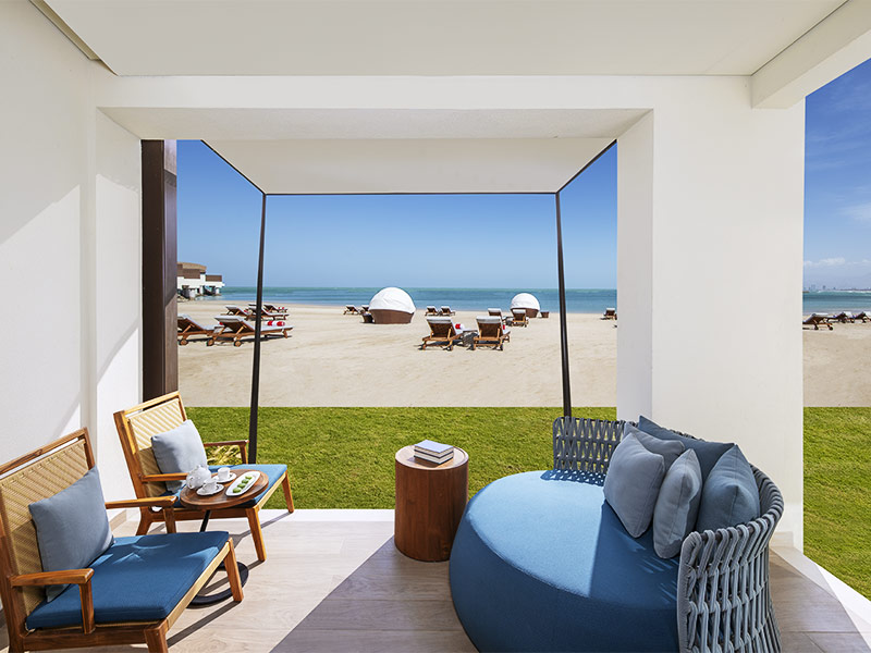Anantara Mina Al Arab beschikt over een van de meest benijdenswaardige locaties van de bestemming: een privéschiereiland met goudkleurig zand dat uitkijkt over de lagune en vervolgens over de open oceaan.