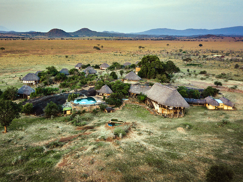 De Apoka Safari Lodge is gelegen op een pittoresk kopje met uitzicht op de Narus-vallei in de zuidwestelijke sector van Kidepo Valley National Park - het meest afgelegen park van Uganda.