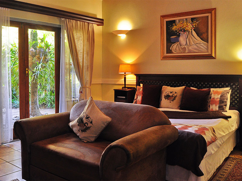 Het guesthouse heeft 10 en-suite kamers met airco, koffie/thee faciliteiten en extra lange bedden. Voor gezamenlijk gebruik zijn er de bar, TV lounge, het zwembad en een knus theehuisje in de tropische tuin met koi-vijver. Een uitgebreid Engels ontbijt wordt geserveerd op de patio met uitzicht op het zwembad. U kunt uw auto veilig parkeren op het eigen terrein.
