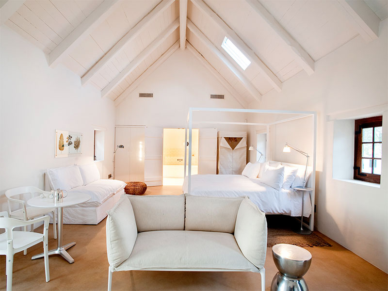 De gebouwen van deze bijzondere accommodatie liggen dicht bij elkaar, zodat het nooit ver lopen is van uw suite naar de receptie, het restaurant, de wijnboerderij of het zwembad, de spa (voor massages en Turks bad) en fitness ruimte.