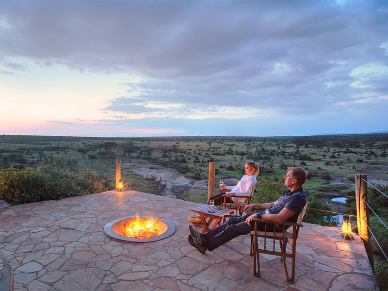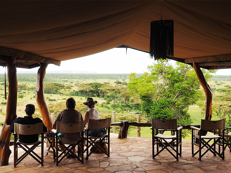 Basecamp Explorer Eagle View ligt in het Naboisho Conservancy, op een heuveltop met uitzicht op een water hole, en grenst direct aan het Masai Mara Game Reserve.
