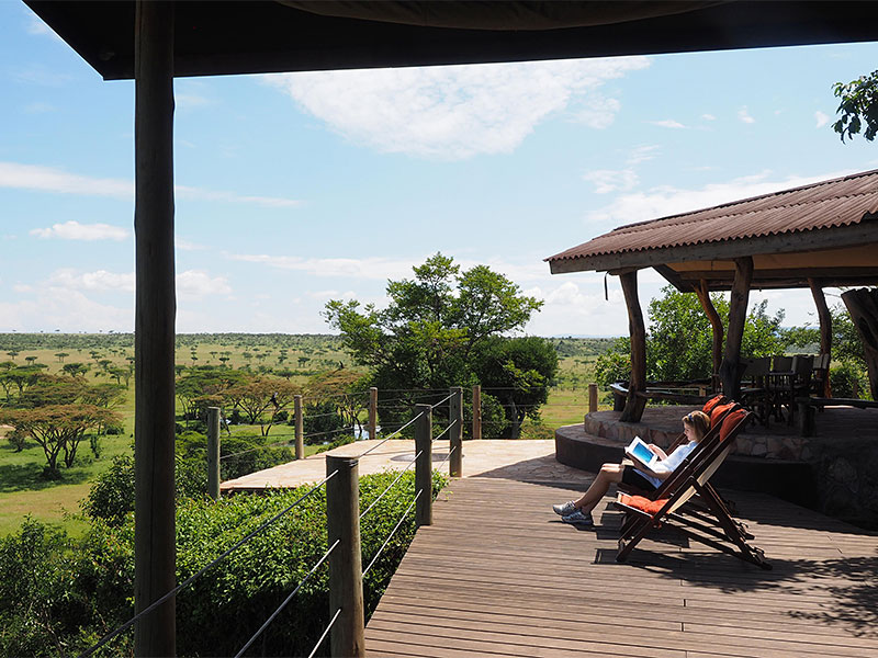 Elke kamer van Basecamp Explorer Eagle View beschikt over een veranda met uitzicht op de Talek rivier.