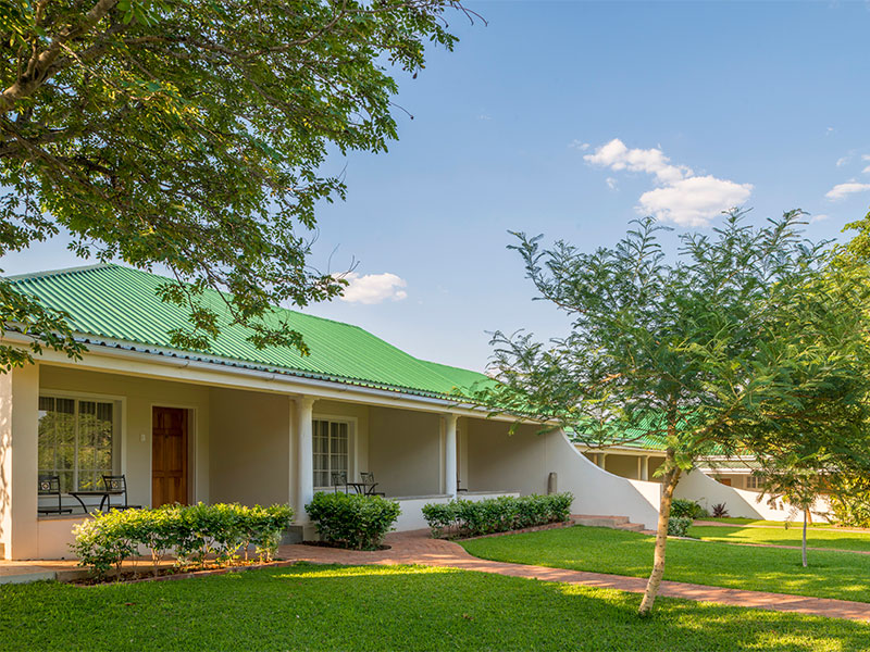 De Batonka Lodge heeft 22 kamers, twee blokken van 6 en twee blokken van 5 kamers, elk zorgvuldig gepositioneerd rondom het pand voor maximale privacy en met uitzicht op een prachtige tuin.