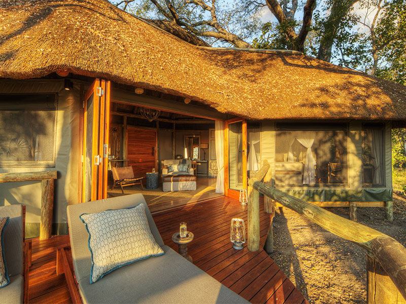 Het onderdak bestaat uit schitterend ingerichte safaritenten met privé faciliteiten. In het hoofdgebouw, de Moremi Tree Lodge, vindt u behalve een lounge, restaurant en cocktailbar ook een uitgebreide wildlife bibliotheek. Vanuit de lounge kunt u onder het genot van een drankje genieten van het uitzicht over de Xakanaxa lagune.