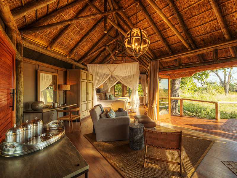 In en om Camp Moremi kunt u de intieme sfeer ervaren van een luxe verblijf op een afgelegen plaats in de bush.
