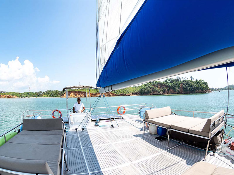 De Ceycat Catamaran is ontworpen voor 8 tot 12 gasten onder begeleiding van een kapitein, chef-kok en bemanningsleden voor overnight cruises.