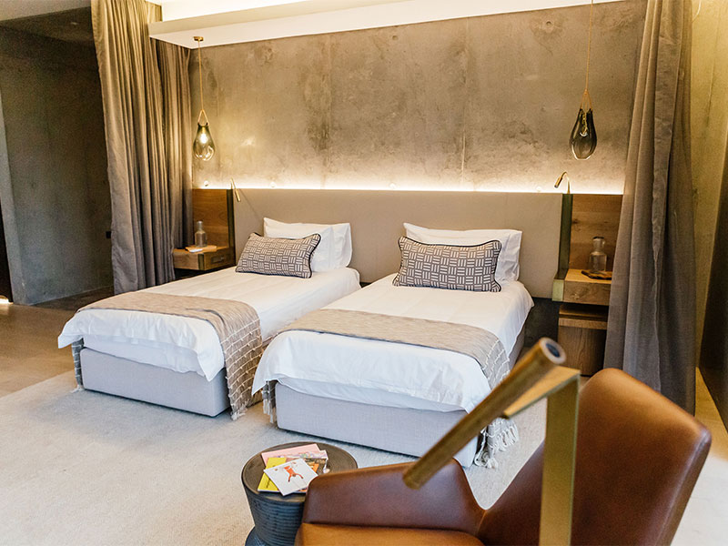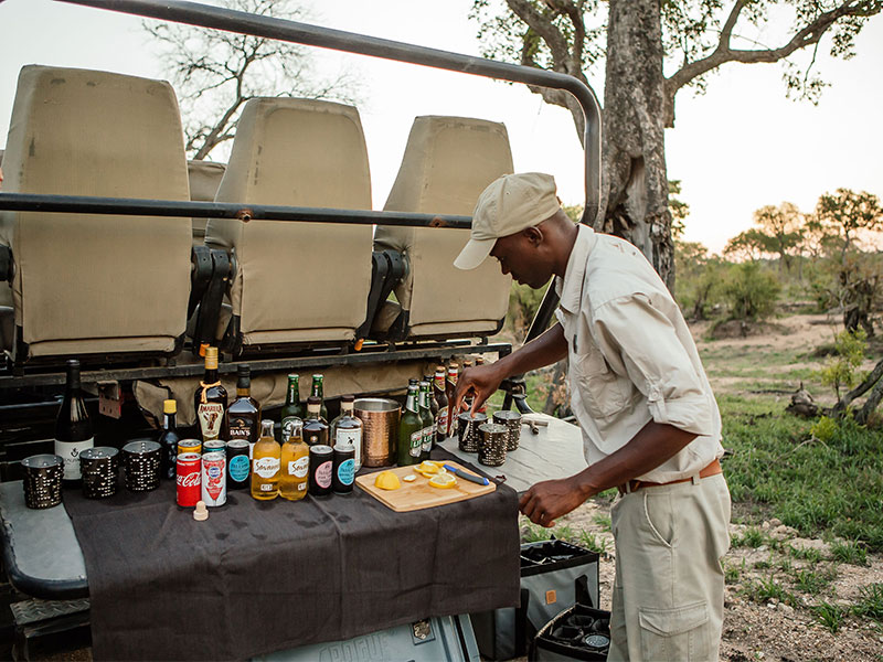 De suites met kingsize bed hebben elk een eigen terras, een kleedkamer, een lounge, een dubbele regendouche en een bad met uitzicht op het prachtige Afrikaanse bushveld.