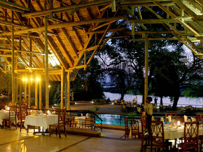 Aan de oevers van de Chobe-rivier biedt het Riverside Restaurant een heerlijke dinerervaring met live kookstations en themagerechten die de lokale en internationale smaken vieren.