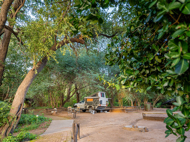De kampeerplaats bevindt zich direct aan de rivier. De goed verzorgde douches en toiletten liggen onder een groot chalet bedekt met een rieten dak.
