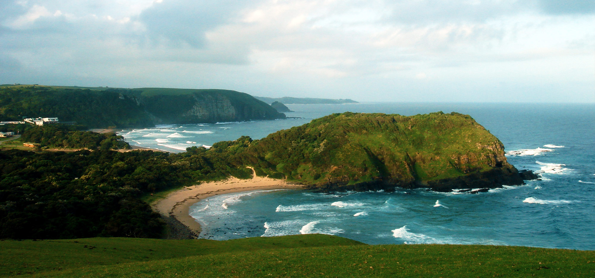Coffee Bay is een van de mooiste kustplaatsjes van de Wild Coast. Er is een lang zandstrand, schitterend gelegen tussen de groene heuvels en de azuurblauwe zee. De baai is genoemd naar een schip geladen met koffiebonen, dat daar in 1893 vergaan is. Een aantal bonen spoelden aan en schoten wortel, maar de plantjes overleefden het niet. U vindt er nu dan ook niets meer van terug.
