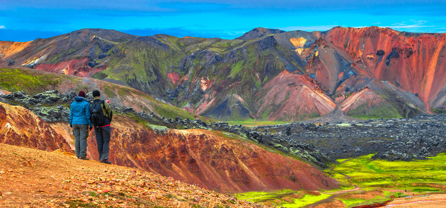 Het is een van de meest indrukwekkende wandelgebieden in het zuiden van IJsland. Landmannalaugar betekent ’hete bronnen’. Het dal heeft een aantal bijzondere geologische eigenschappen, is met lava bedekt en wordt omringd door geel, bruin rood, groen en grijsblauwe rhyolietbergen.