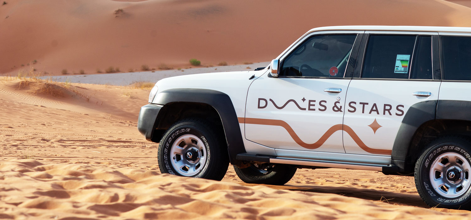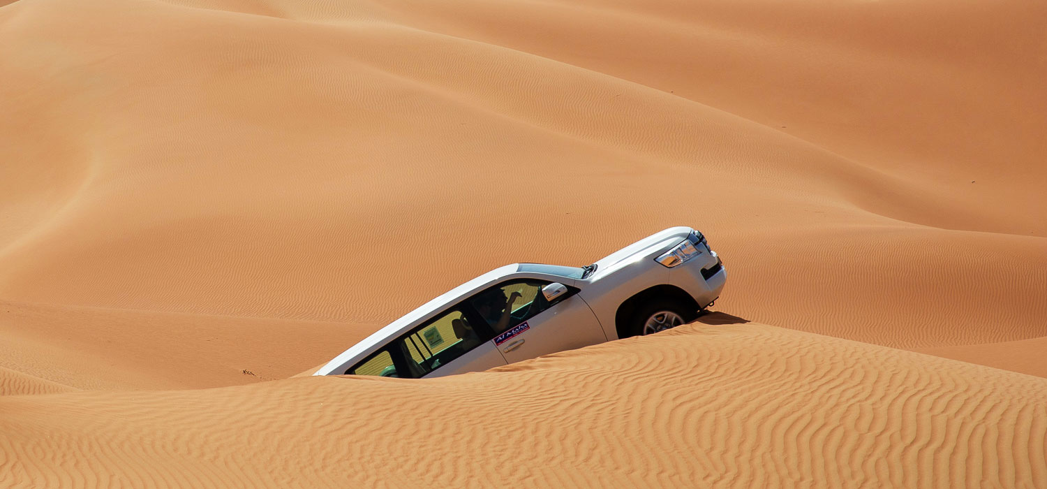U rijdt zelf in een goed geëquipeerde, speciaal geprepareerde expeditie auto (2 personen per auto) onder begeleiding van de zeer ervaren crew van Dunes & Stars.