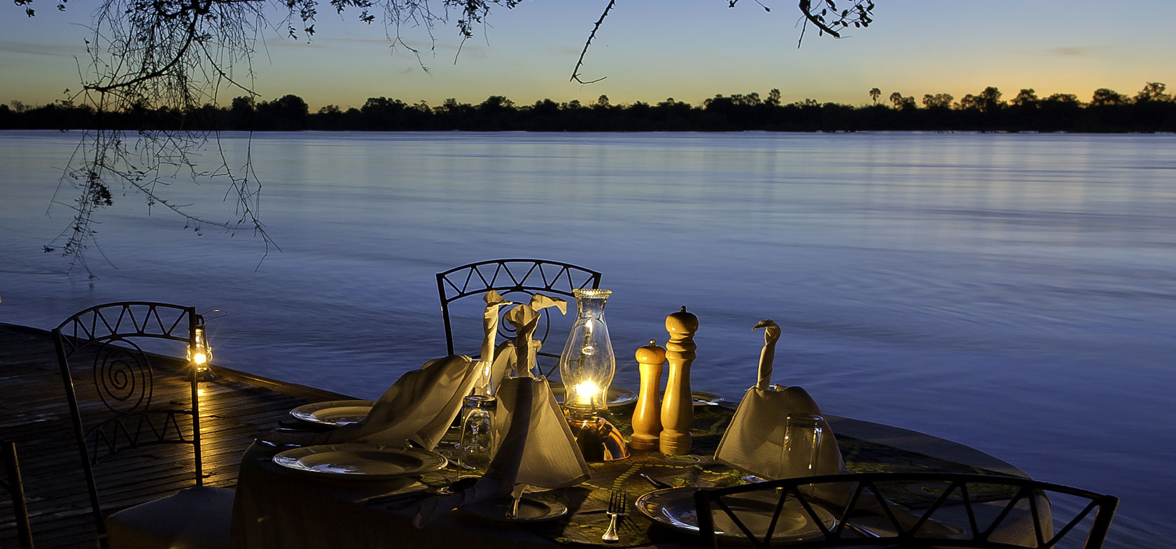 U vaart naar Sindabezi Island, een privé eiland in de Zambezi rivier, de zusterlodge van Tongebezi. Hier beleeft u Afrika op z'n best: middenin de natuur, rust en ruimte, maar met heerlijk eten en een lekkere wijn. In de avond wordt het hele eiland, inclusief de lounge en het restaurant, sfeervol verlicht met olielampen en kaarsen.