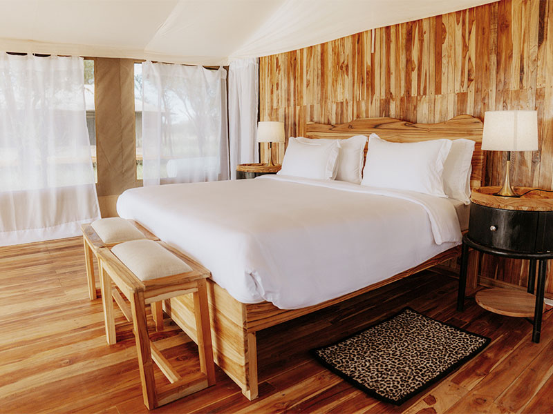 Het kamp is kleinschalig en biedt een intieme, luxe safari-ervaring, weg van de drukte. De ruime safaristijl tenten zijn stijlvol ingericht met een en-suite badkamer met een warme douche en een westers toilet. Zonne-energie voorziet in verlichting en oplaadmogelijkheden. Elke tent heeft een privé veranda met een prachtig uitzicht op de Serengeti-vlaktes.