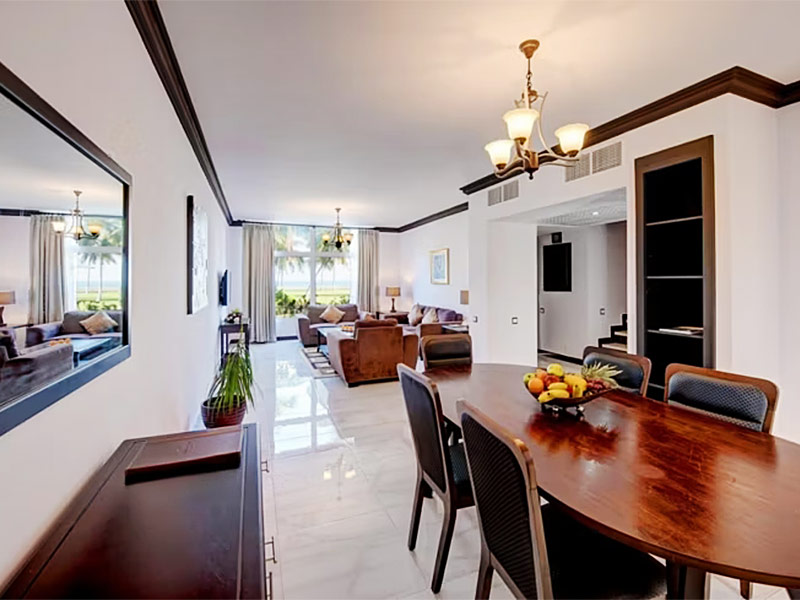 Verschillende restaurants en bars die een breed scala aan internationale en lokale gerechten aanbieden. Hoogtepunten zijn het buffetrestaurant, een à-la-carterestaurant, en diverse bars voor cocktails en lichte snacks. U kunt dineren op het terras of een cocktail drinken aan de bar bij het zwembad. De Al Khareef Pub is tot in de ochtenduren open.