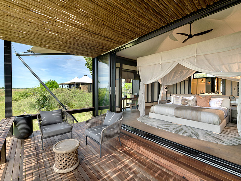 U verblijft in een intieme setting met slechts 5 luxe tented suites, waardoor het kamp maximaal ongeveer tien gasten ontvangt en u geniet van ultieme rust en persoonlijke aandacht.