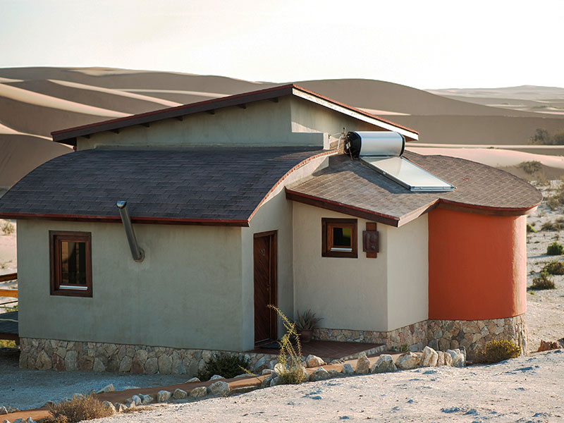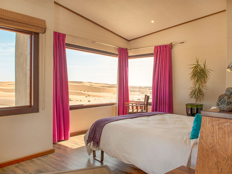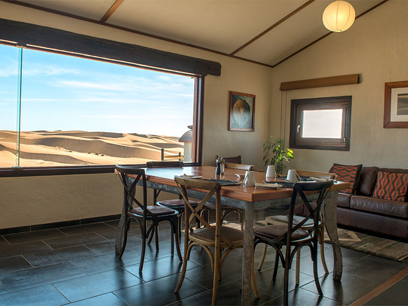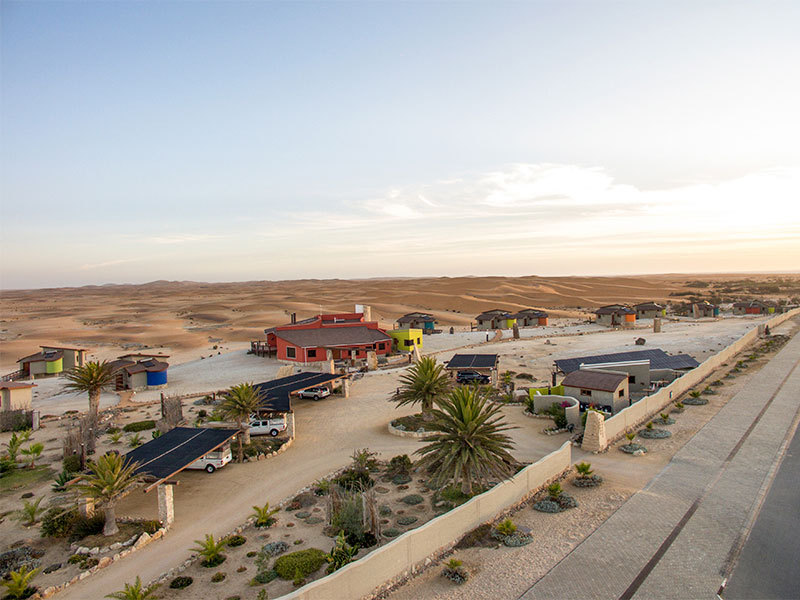 Desert Breeze is gebouwd aan de rand van het stadje en bestaat uit 12 luxe bungalows en één grote villa met 2 slaapkamers, die elk uitzicht hebben over de weidse duinen de Namib woestijn. Zowel vanuit uw bed als vanaf het zonnedek kunt u van deze uitzichten genieten.