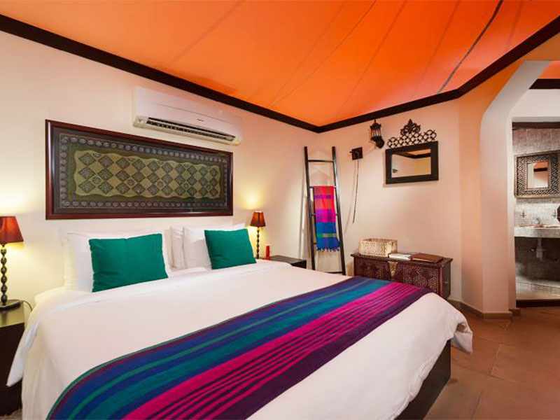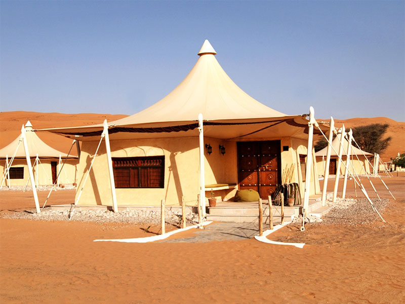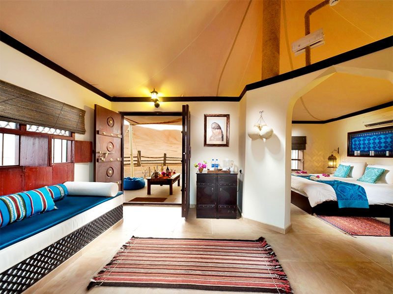 De 30 en-suite tent-suites hebben stenen muren met witte canvas daken, zijn sfeervol ingericht in Arabische stijl en hebben een prachtig uitzicht op de gouden zandduinen rondom het kamp.