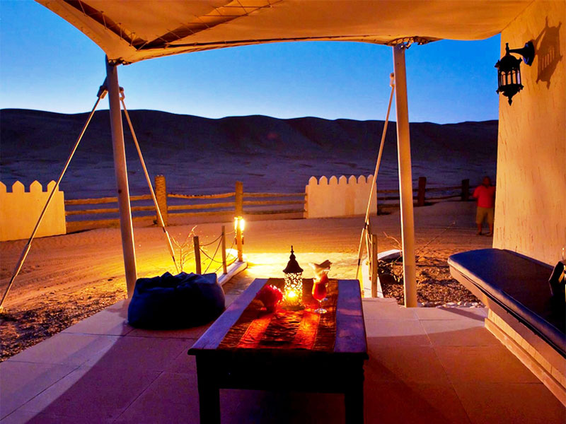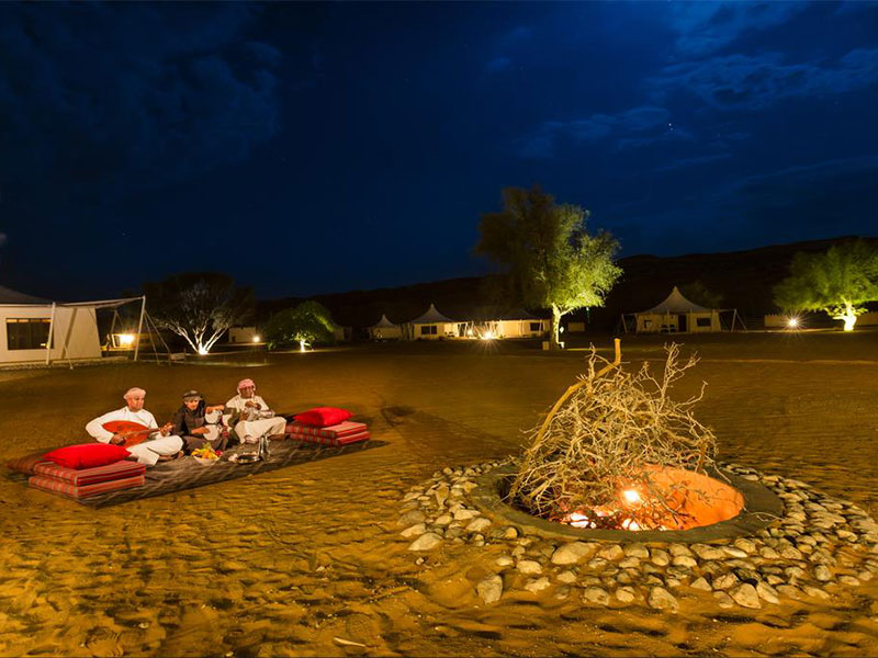 U kunt ook genieten van een kopje Arabische koffie in de Oasis bar of een traditionele Omani lams-barbecue rond het kampvuur (tegen kleine meerprijs).