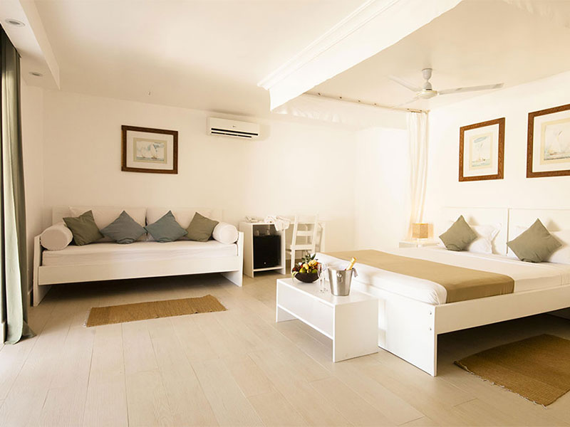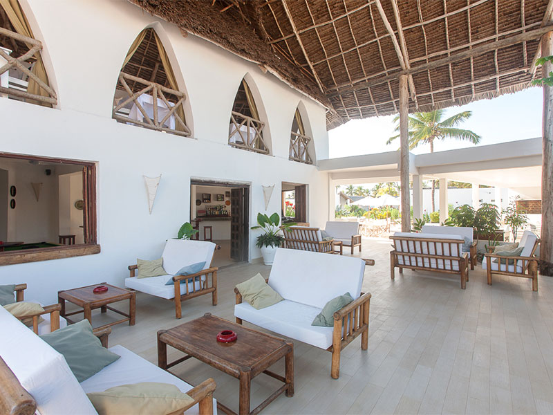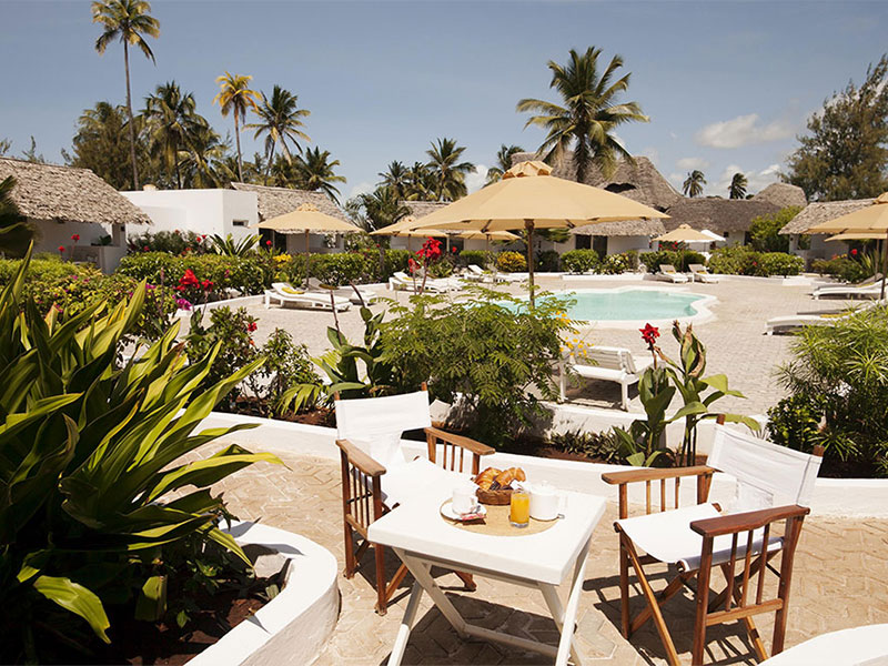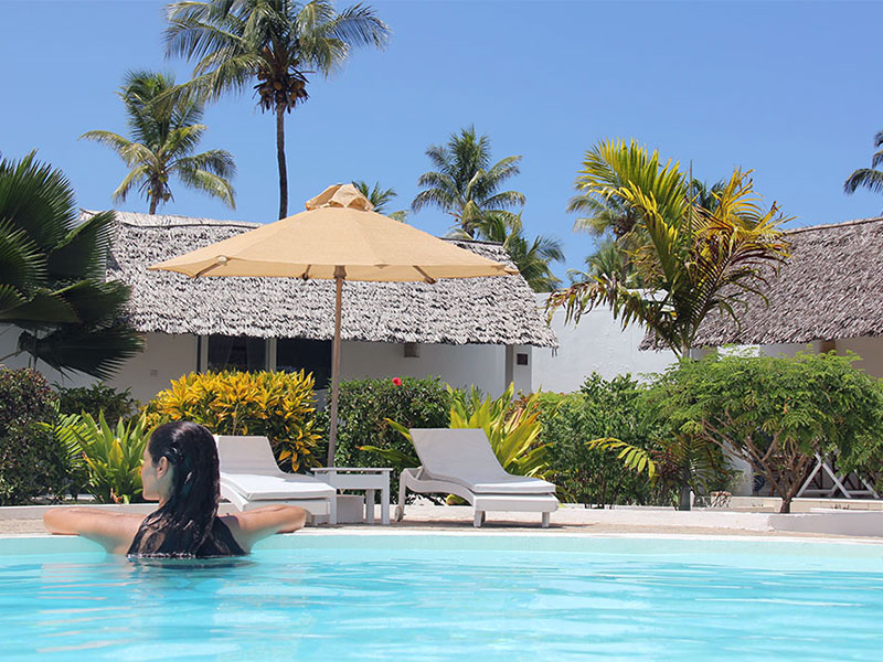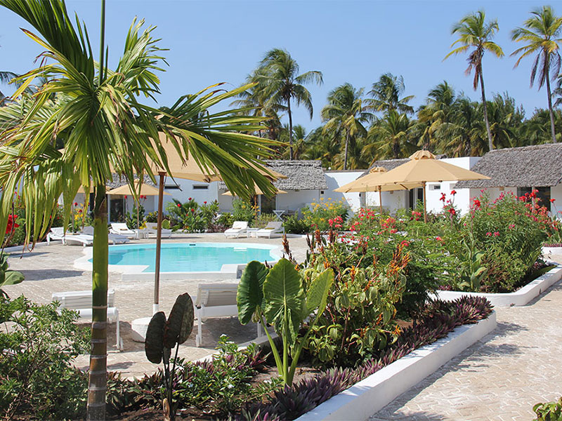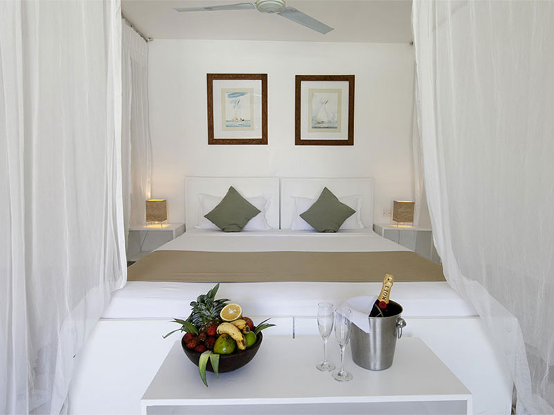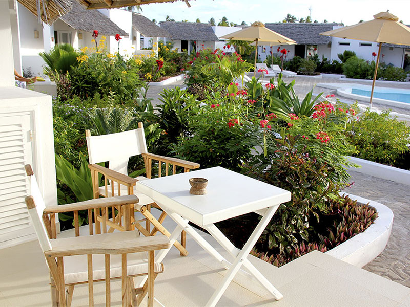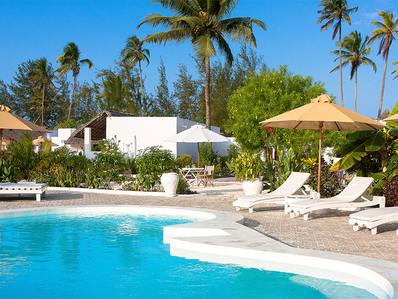 De 44 ruime kamers zijn eigentijds, stijlvol en charmant ontworpen in een Europese bouwstijl met een vleugje Zanzibar-flair. Elke kamer heeft een buitenterras met uitzicht op een zwembad en weelderig groen. Alle kamers zijn uitgerust met hoogwaardige voorzieningen, waaronder gratis wifi, airconditioning, minibar, kluis, comfortabele bedden met klamboe, plafondventilator, nachtkastjes en nachtverlichting. Warm water wordt geleverd door zonneboilers.