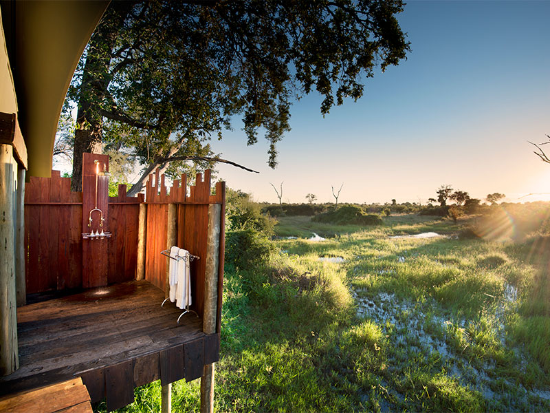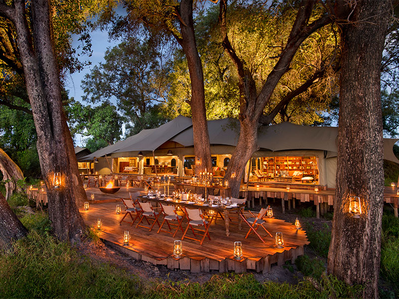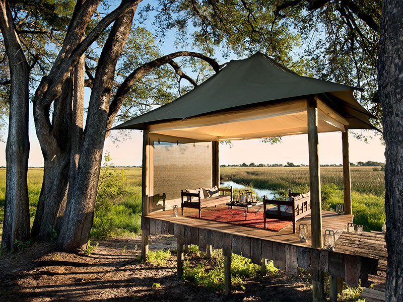 Duba Plains Camp ligt op een eiland in een privé reservaat van 30.000 hectare. Het is een klein, intiem kamp in de schaduw van diverse bomen, omgeven door overstroomde vlaktes.