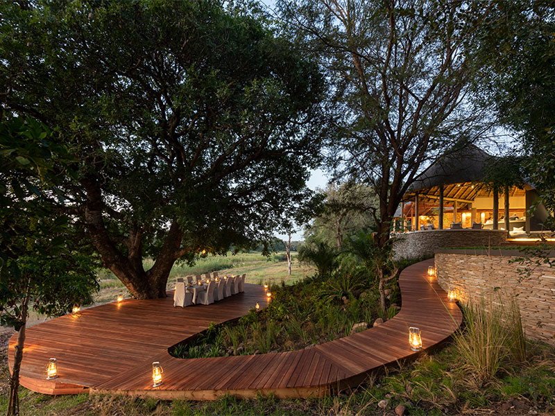 De lodge telt slechts 6 suites die allen uitzicht bieden op de Mabrak River. Uiteraard gaat u hier fantastische game drives maken, maar de wijnkelder biedt u tevens een ruime keuze aan excellente wijnen tijdens uw uitstekende diner. Safari met verfijning...