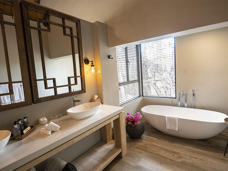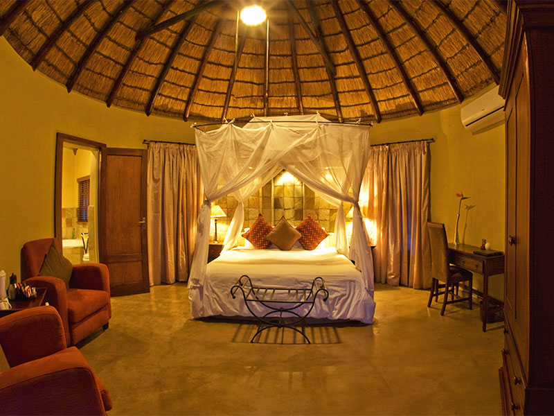 Er zijn 5 eenvoudige met riet bedekte rondavels met uitzicht op de tuin, 6 luxe kamers met open haard en 1 Manyeleti Honeymoon Suite met buitendouche en klein zwembad. Alle kamers zijn in Afrikaanse stijl ingericht en voorzien van airconditioning, ventilator, kluisje, koffie- en theefaciliteiten, minibar, muskietennet en een en-suite badkamer.