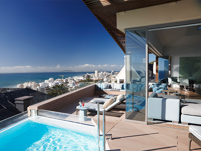 De zeer bekende, exclusieve accommodatie ligt in de windluwe badplaats Bantry Bay, op slechts 10 minuten rijden van het Victoria & Alfred Waterfront in Kaapstad.