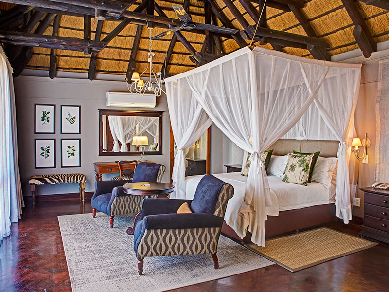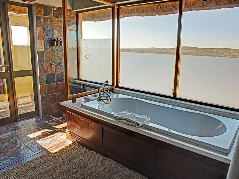Epacha Game Lodge & Spa biedt 18 luxe chalets verspreid over de heuvels, met uitzicht op het privé-wildreservaat. Elk chalet heeft een groot balkon, is voorzien van airconditioning, heeft een minibar, een kluisje en koffie- en theefaciliteiten. De luxe badkamer biedt een ruim bad, een grote binnendouche en een buitendouche.
