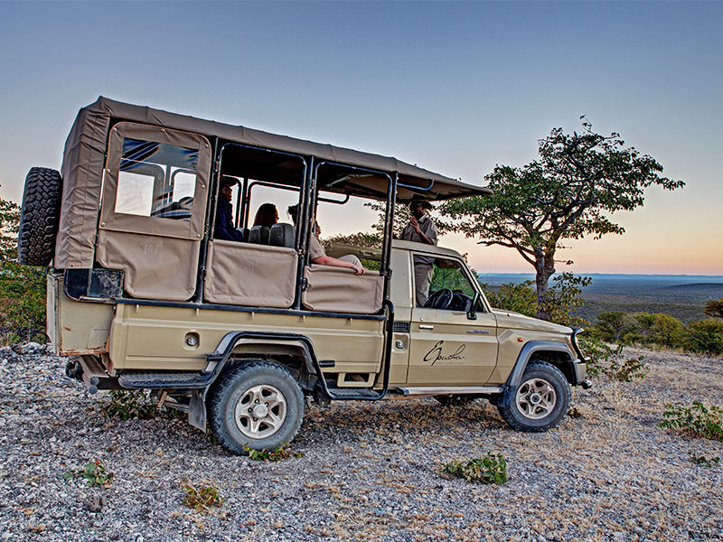 Epacha Game Lodge & Spa ligt op de top van de heuvels van het 13000 ha grote Epacha Private Game Reserve, vlakbij het Etosha National Park.
