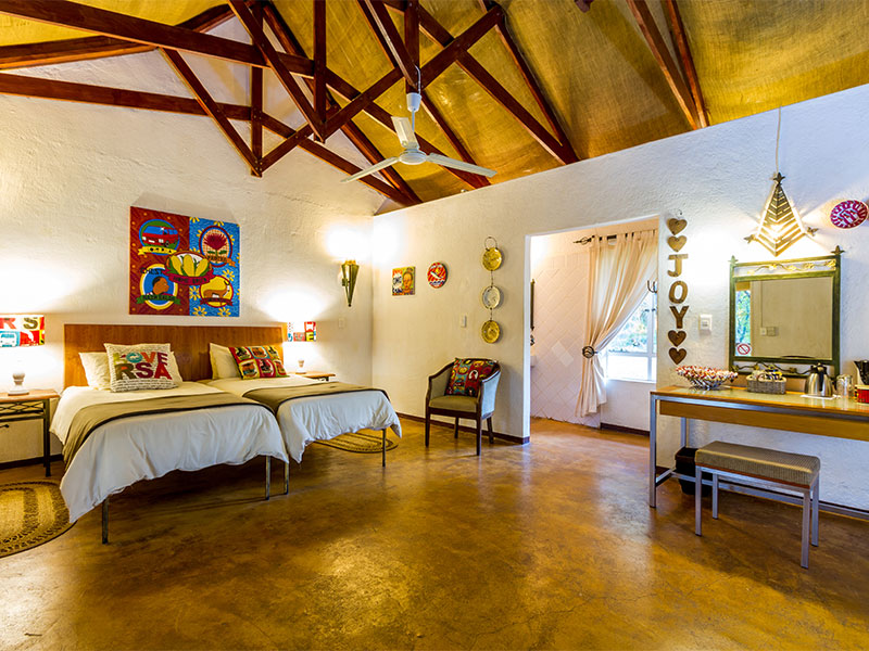 Er zijn 23 kamers, waaronder 2 familiekamers, die toegang hebben tot de tropische tuin. Elke kamer heeft zijn eigen karakter en is voorzien van een plafond ventilator, koffie/theefaciliteiten, een kluisje en een en-suite badkamer met douche en toilet.